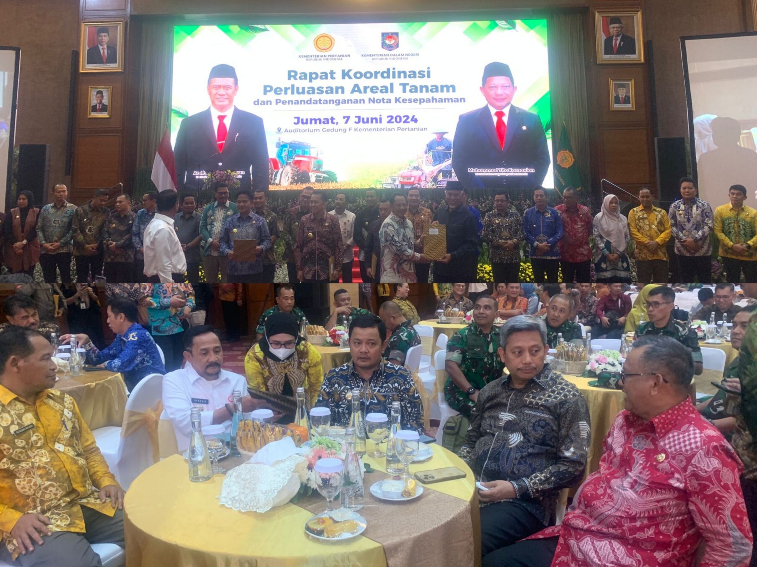 HALILINTARNEWS.id, JAKARTA – Sebanyak 14 Gubernur /Pj. Gubernur dan 195 Bupati /Pj. Bupati serta Walikota /Pj. Walikota hadir pada Rapat Koordinasi Perluasan Areal Tanam dan Penandatanganan Nota Kesepahaman antara Menteri Pertanian dengan Menteri Dalam Negeri. Termasuk didalamnya Pj. Bupati Bantaeng, Andi Abubakar yang hadir langsung pada kegiatan yang dilaksanakan di Auditorium Gedung F Kementerian Pertanian, Jakarta, Jum’at (7/6).
