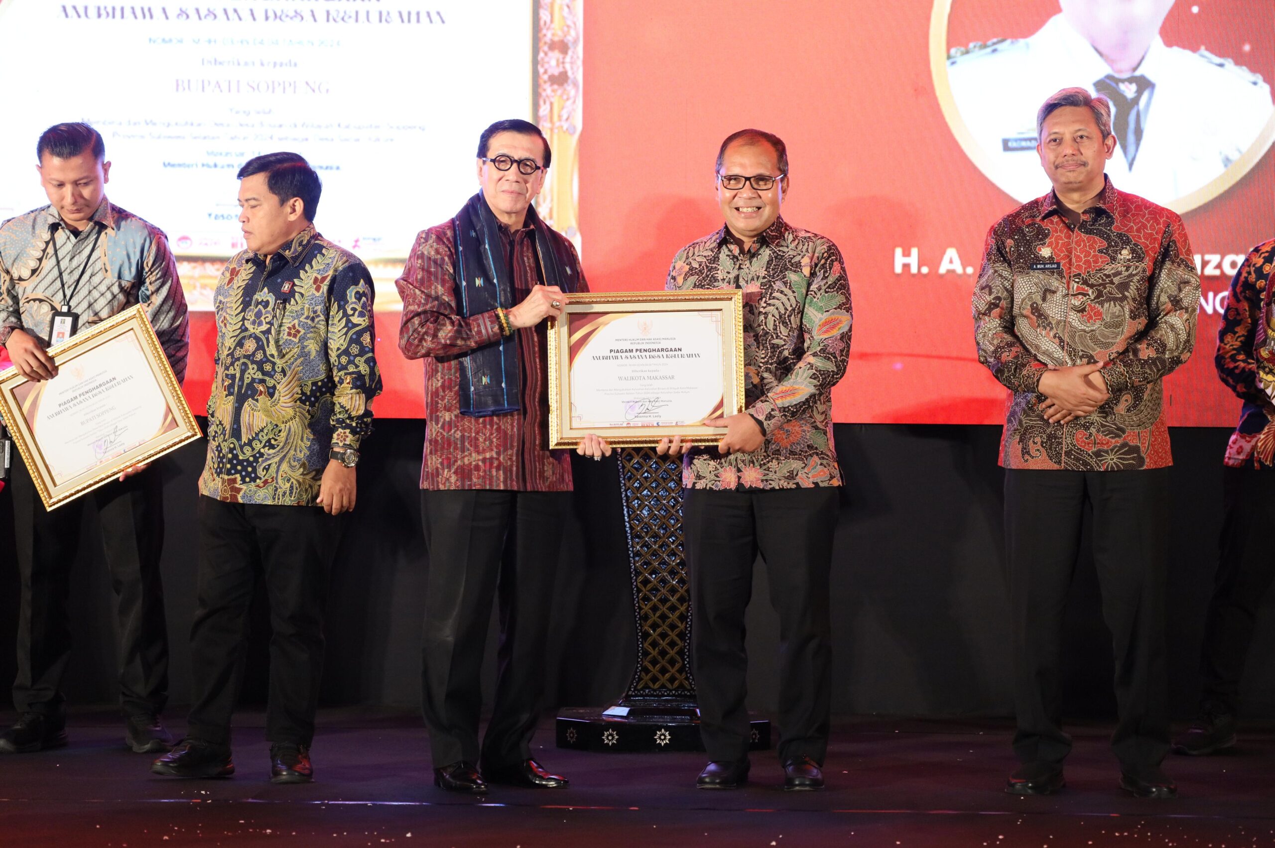 Menkumham Yasonna Laoly juga memberikan penghargaan kepada Wali Kota Makassar Moh Ramdhan Pomanto karena telah mengukuhkan kelurahan-kelurahan binaan di Kota Makassar sebagai Kelurahan Sadar Hukum.
