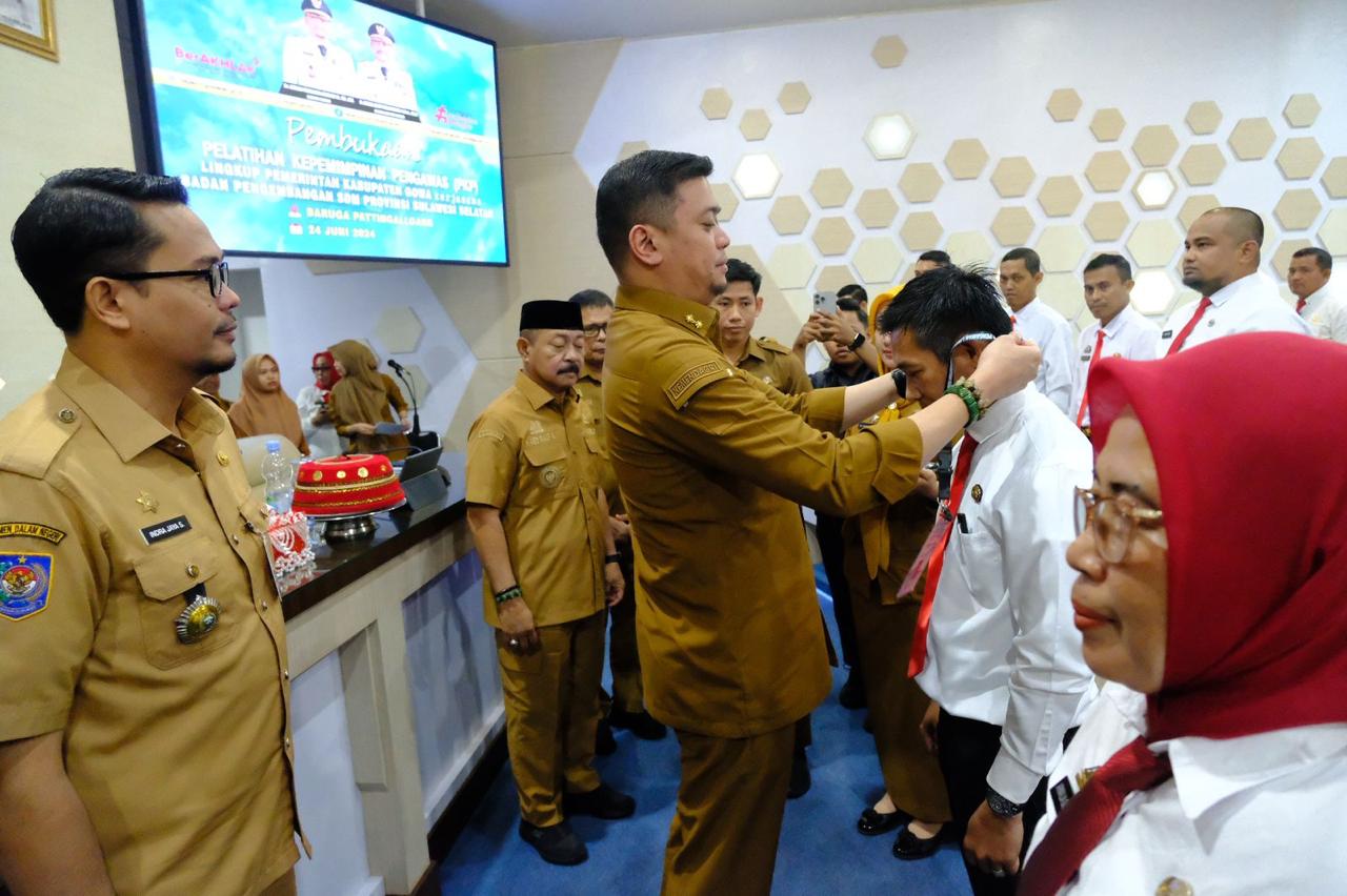 HALILINTARNEWS.id, GOWA – Bupati Gowa, Adnan Purichta Ichsan didampingi Wakil Bupati Gowa, Abdul Rauf Malaganni dan Pj Sekretaris Daerah Kabupaten Gowa, Abdul Karim Dania membuka Pelatihan Kepemimpinan Pengawas (PKP) Lingkup Pemerintah Kabupaten Gowa di Baruga Karaeng Pattingalloang, Kantor Bupati Gowa, Senin, (24/06/2024).