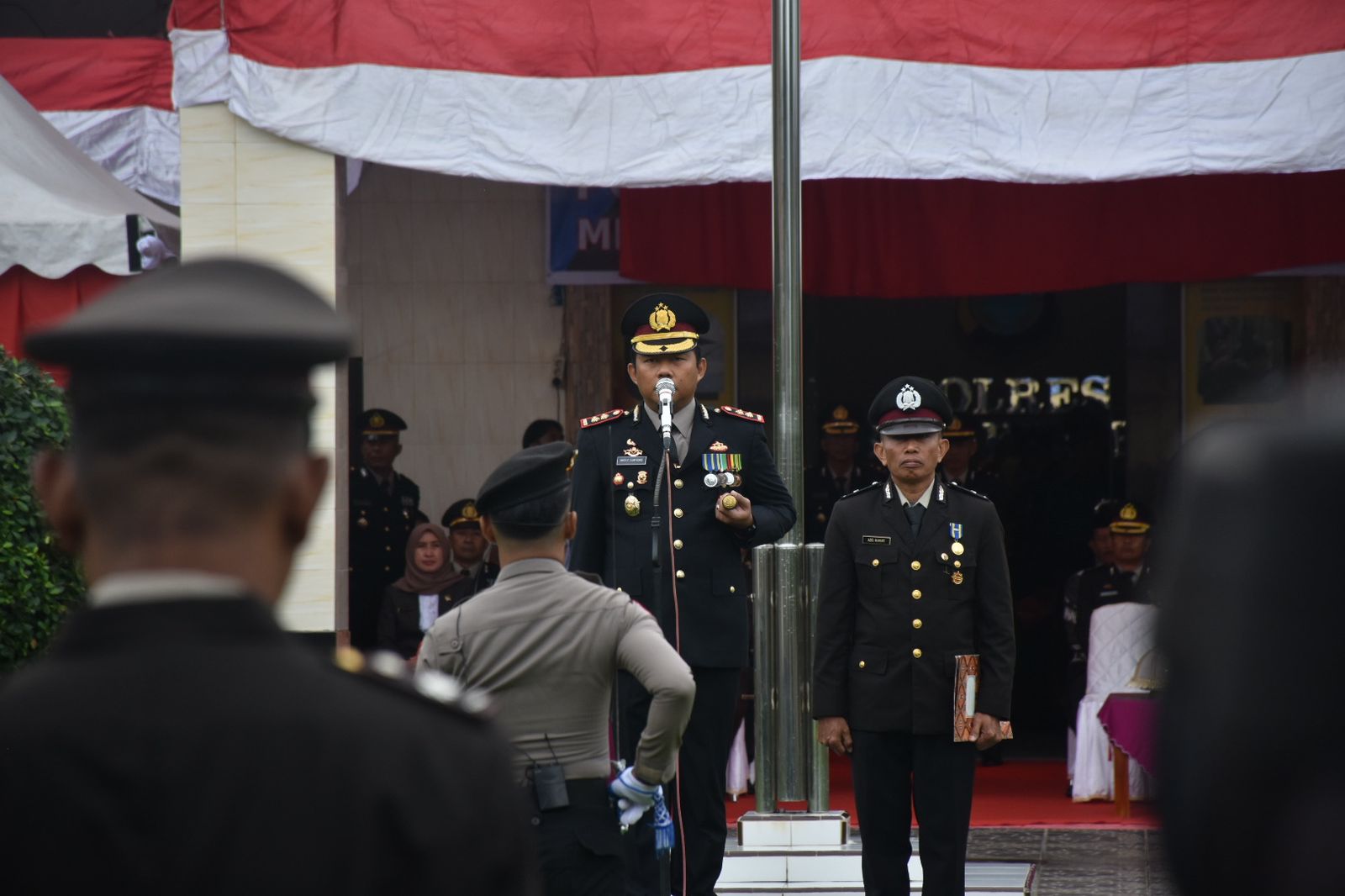 Kapolres Bulukumba AKBP Andi Erma Suryono, S.H.,S.I.K.,M.M bertindak selaku inspektur upacara, dan Komandan upacara IPDA Dimas Adji Saputra, S.TR.K Kanit Turjawali Sat lalulintas Polres Bulukumba.