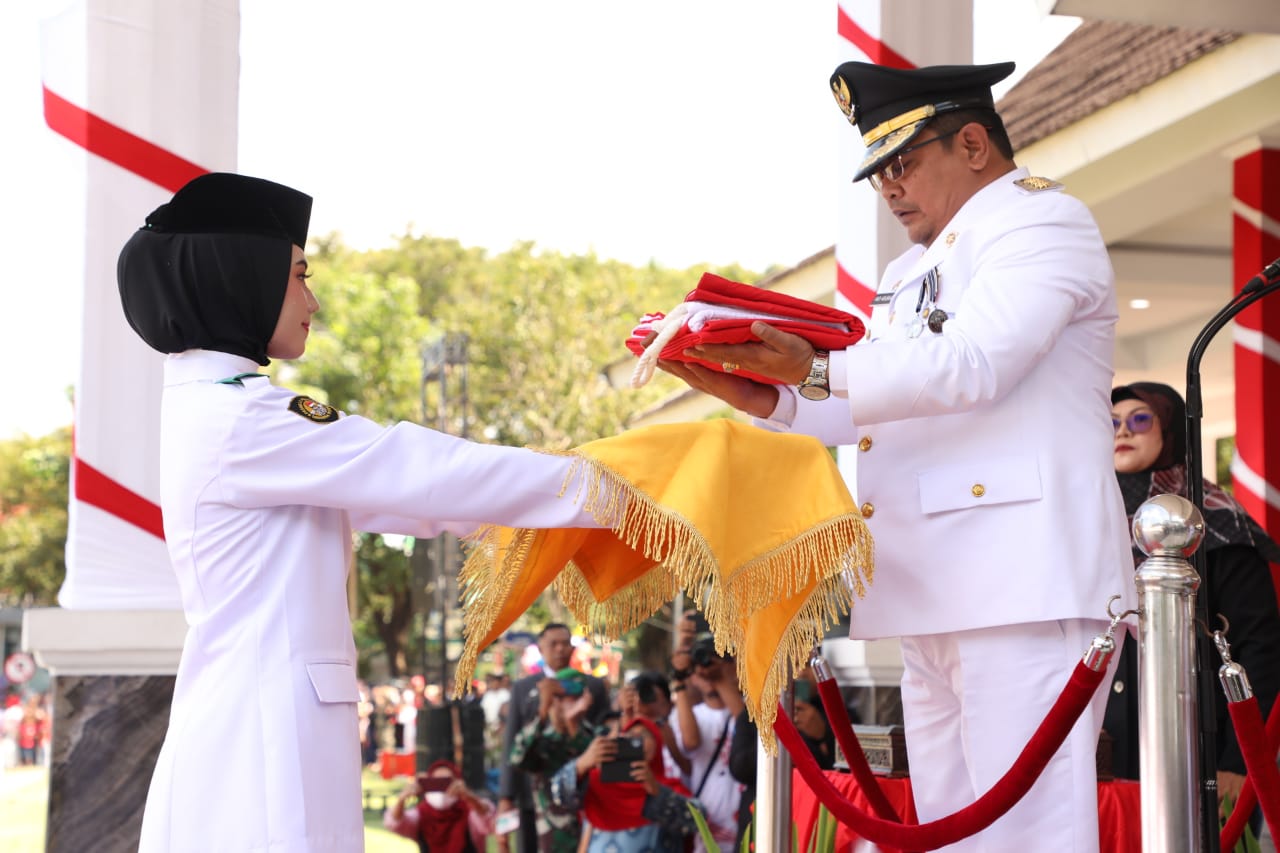 Pj. Bupati Bantaeng Bersama Unsur Forkopimda Serahkan Bendera Kepada Paskibraka