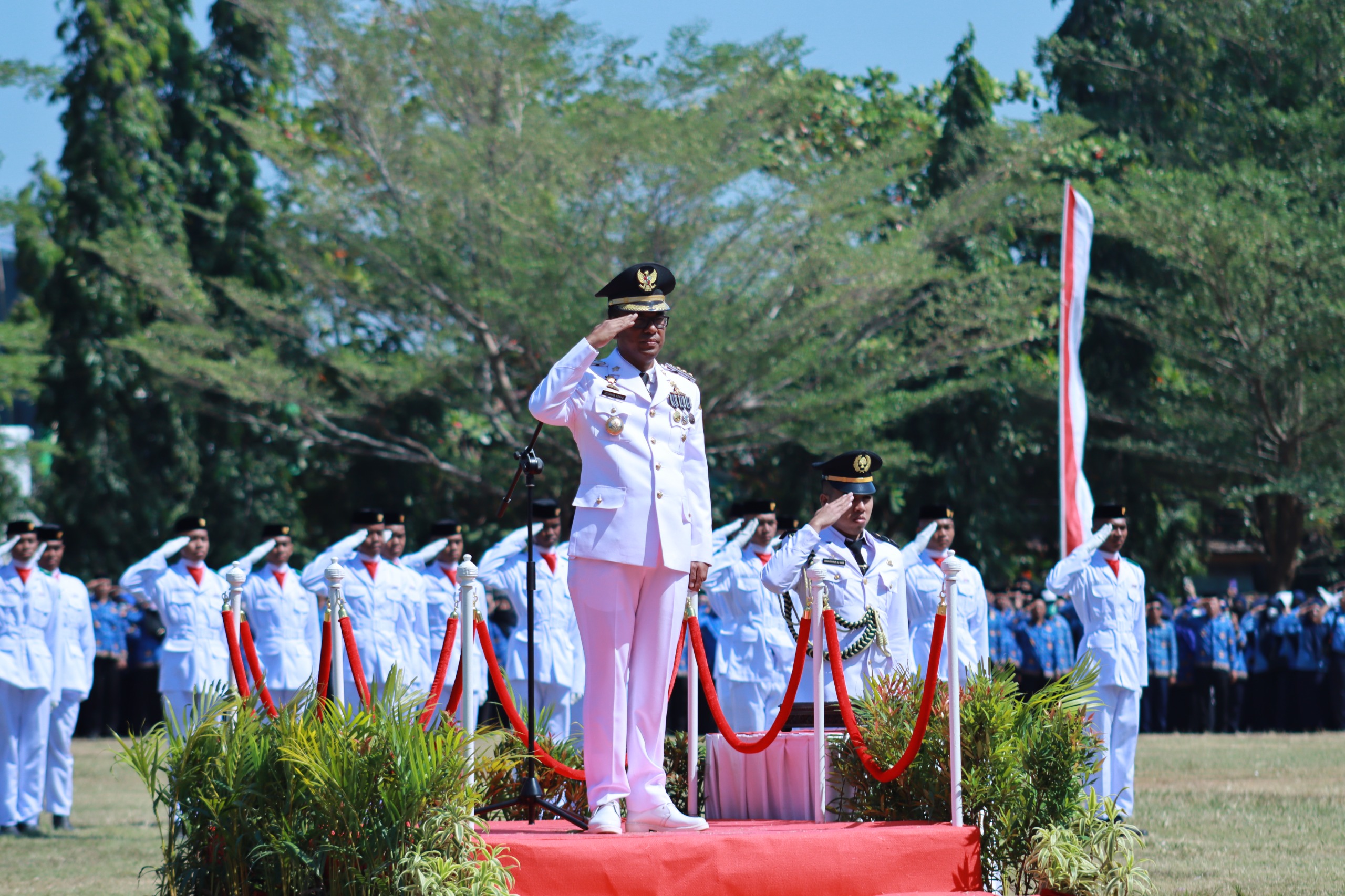 HALILINTARNEWS.id, TAKALAR – Pj. Bupati Takalar Setiawan Aswad, M.Dev.,Plg bertindak sebagai Inspektur Upacara peringatan HUT RI Ke-79 tingkat Kabupaten Takalar yang dilaksanakan di Lapangan Haji Makkatang Dg. sibali Takalar. Upacara berlangsung lancar. Pasukan Paskibraka sukses melakukan penaikan bendera merah putih diiringi Lagu Indonesia Raya, Sabtu (17/08/2024).