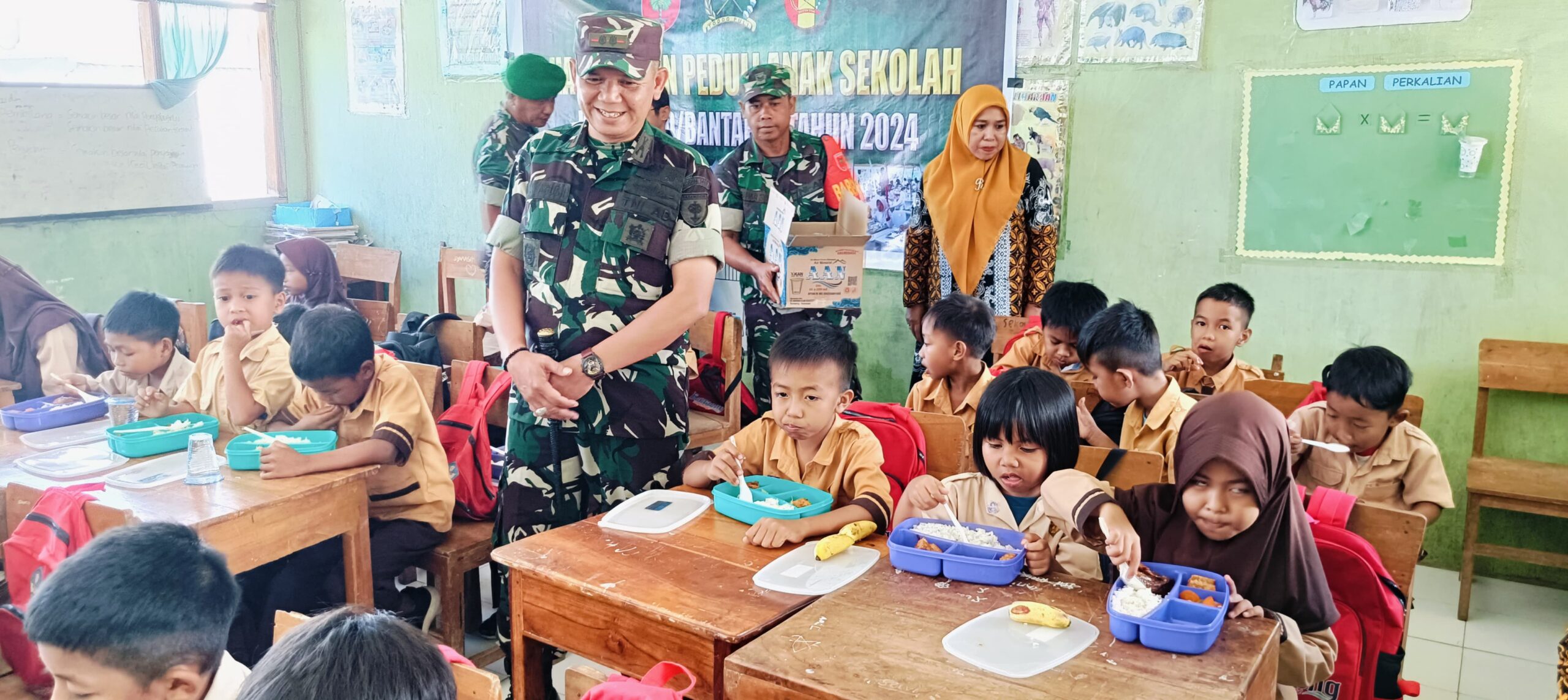 HALILINTARNEWS.id, BANTAENG – Dalam rangka mendukung Program Hasanuddin Peduli Anak Sekolah, Dandim 1410/Bantaeng Letkol Inf Eka Agus Indarta, S.Psi., M.Psi., di dampingi Ketua Persit Kartika Chandra Kirana Cabang XXVII Dim 1410, Ny. Meri Eka Agus Indarta, memimpin langsung kegiatan pemberian makan bergizi kepada siswa siswi, serta pemberian seragam sekolah bagi Siswa-Siswi yang kurang mampu, Kegiatan berlangsung di SD Negeri 73 Paranglabbua, Desa Bonto Salluang, Kecamatan Bissappu, Kabupaten Bantaeng, Jumat (06/09/2024).