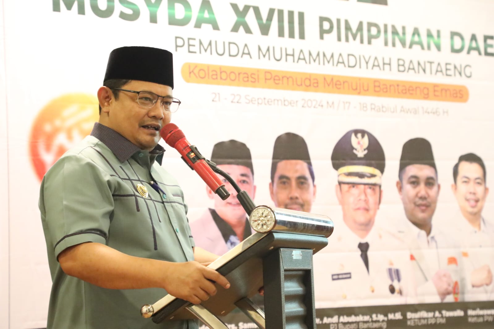 Pj. Bupati Bantaeng Andi Abubakar saat membuka Musyda XVIII Pimpinan Daerah Pemuda Muhammadiyah Bantaeng menyampaikan hari ini merupakan sebuah kebahagiaan dan cermin dari pergerakan tongkat estafet Pemerintahan.