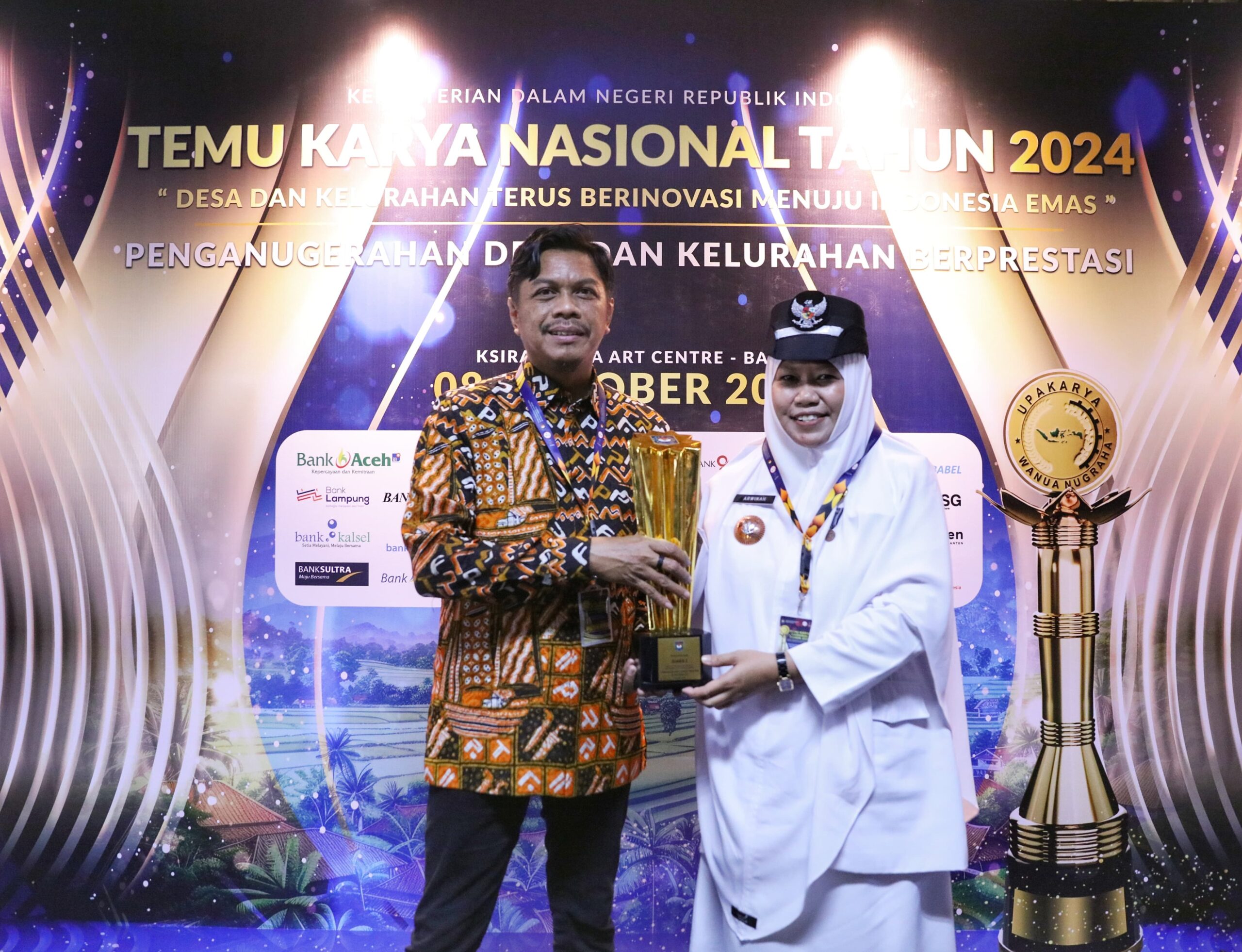 Penghargaan tersebut diserahkan dalam acara Temu Karya dan Penghargaan Desa dan Kelurahan Berprestasi yang berlangsung di Gedung Ksirarnawa, Denpasar, Bali, pada Selasa, (8/10/2024).