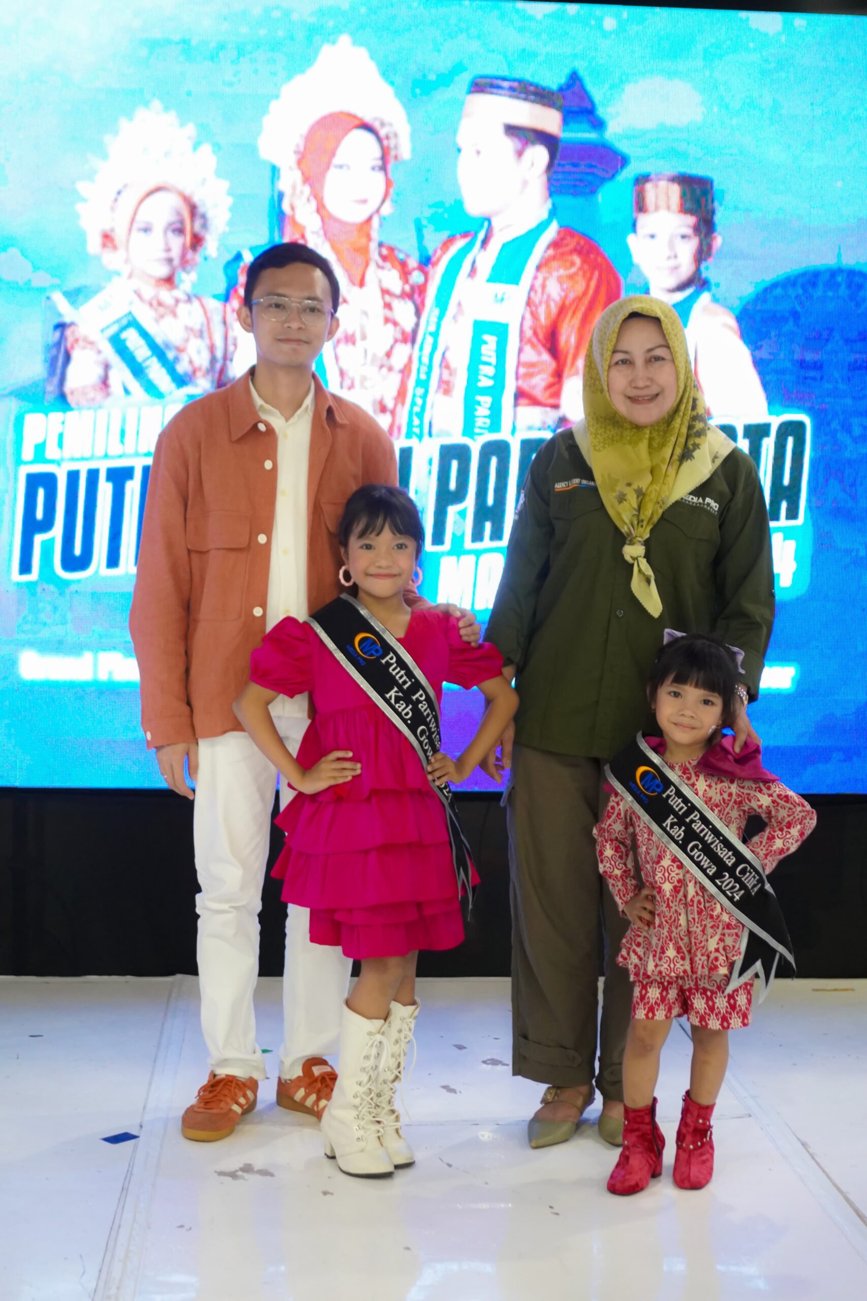 Dalam acara unik yang penuh semangat, anak-anak usia dini tampil di atas catwalk dengan mengenakan baju bodo, pakaian adat khas Makassar, untuk mempromosikan kearifan lokal kota mereka.