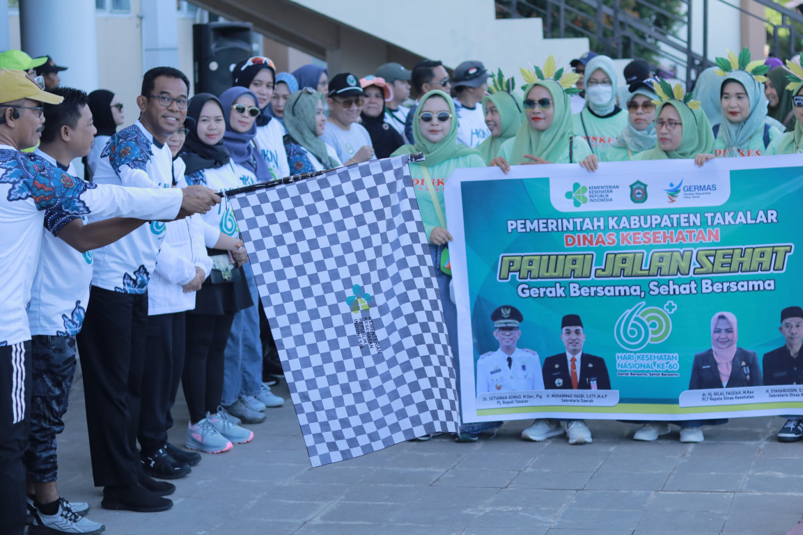 HALILINTARNEWS.ID, TAKALAR – Dalam rangka memperingati Hari Kesehatan Nasional (HKN) ke-60, Pemerintah Kab. Takalar dalam hal ini Dinas Kesehatan Kab. Takalar menggelar Pawai Jalan Sehat yang dilepas oleh Pj. Bupati Takalar Dr. Setiawan Aswad,.M.Dev,.Plg.