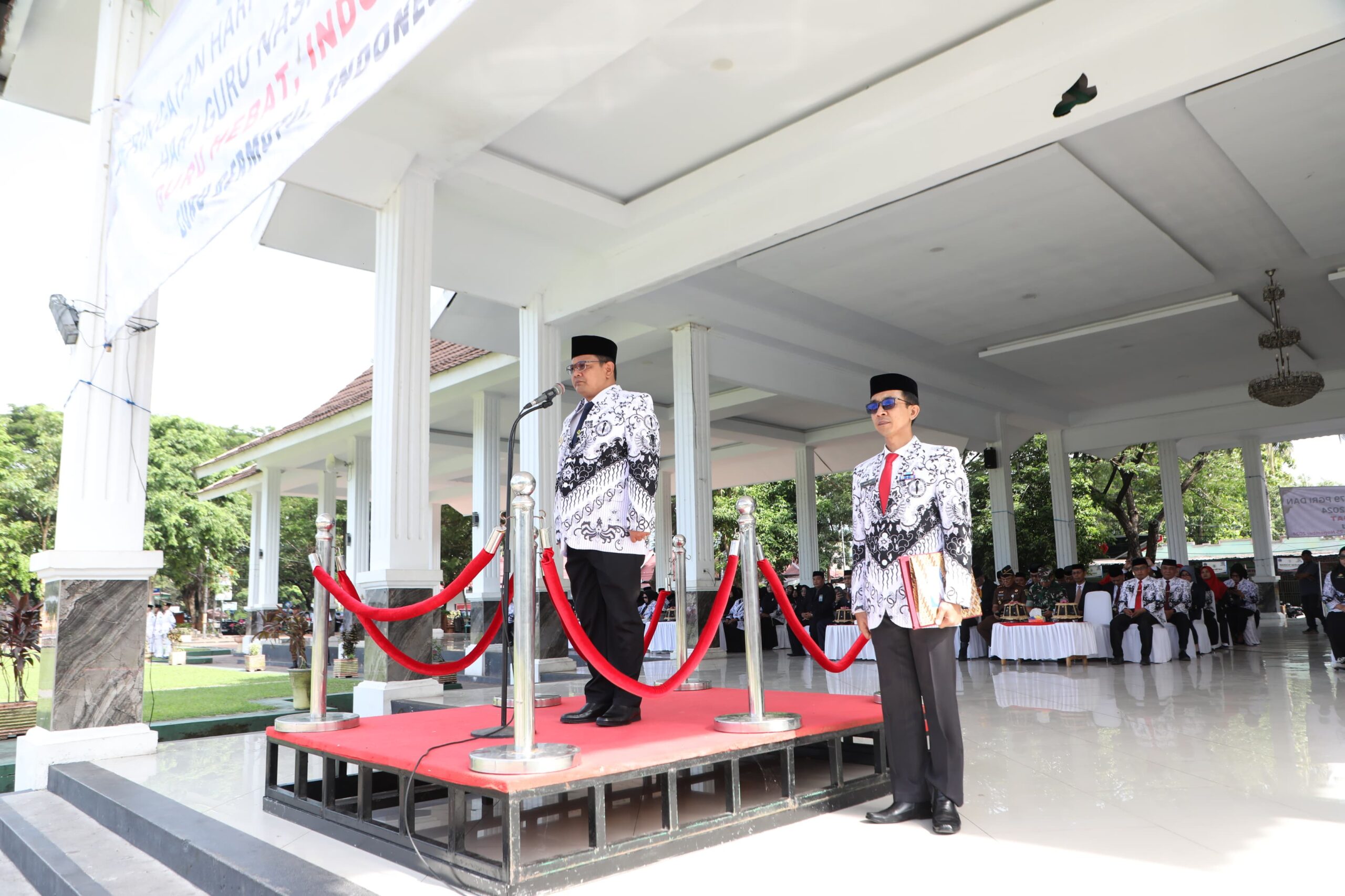 Pj. Bupati Bantaeng, membacakan pidato Menteri Pendidikan Dasar Dan Menengah Republik Indonesia, Abdul Mu’ti, mengucapkan selamat Hari Guru Nasional untuk para guru di seluruh tanah air, baik yang mendidik di kota-kota besar, satuan pendidikan yang ternama, maupun mereka yang mengabdi di pelosok desa, di satuan pendidikan dengan fasilitas, saran prasarana pendidikan yang terbatas, ala kadarnya. Semuanya merupakan tugas mulia mencerdaskan dan memajukan bangsa.