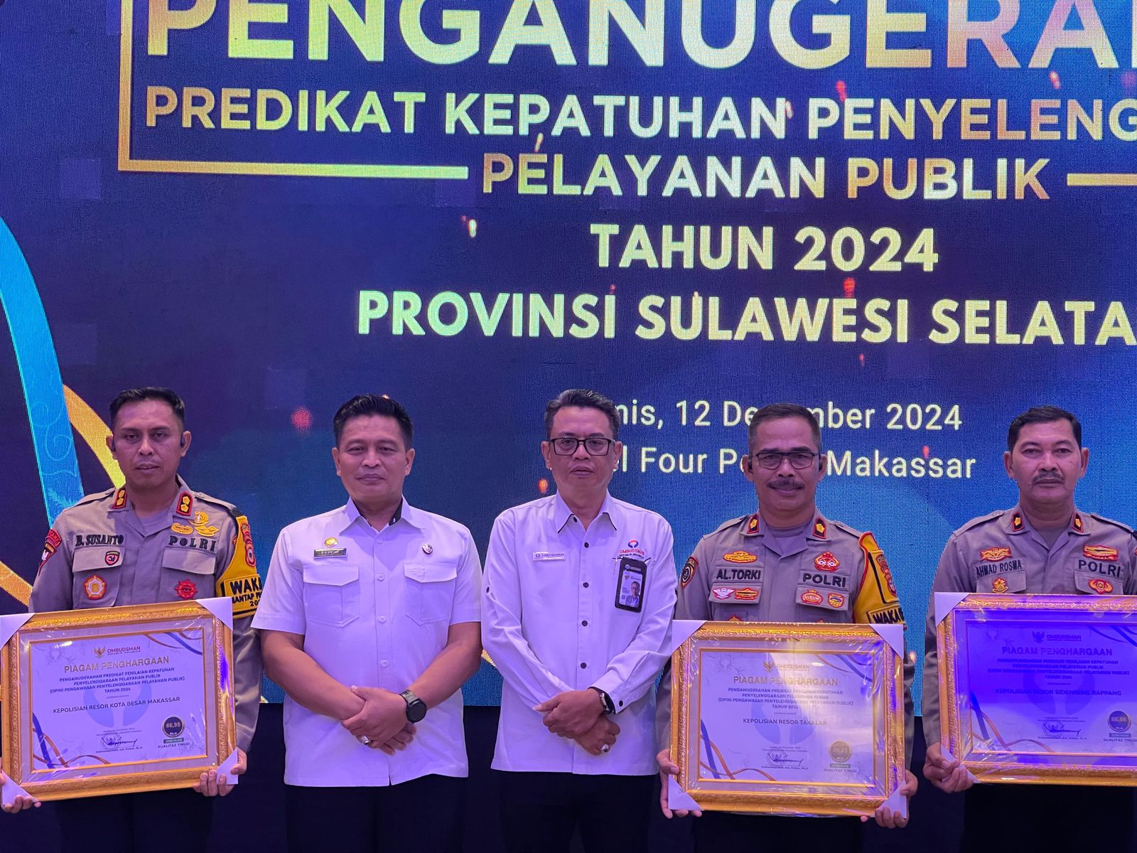 HALILINTARNEWS.id, TAKALAR β Prestasi gemilang berhasil ditorehkan oleh Polres Takalar pada tahun 2024. Dalam acara Penganugerahan Predikat Kepatuhan Penyelenggaraan Pelayanan Publik Tahun 2024 yang diinisiasi oleh Ombudsman RI Perwakilan Sulawesi Selatan, Polres Takalar dinobatkan sebagai peringkat kedua dalam penilaian kepatuhan pada lingkup lembaga Kepolisian Resor se-Sulawesi Selatan.