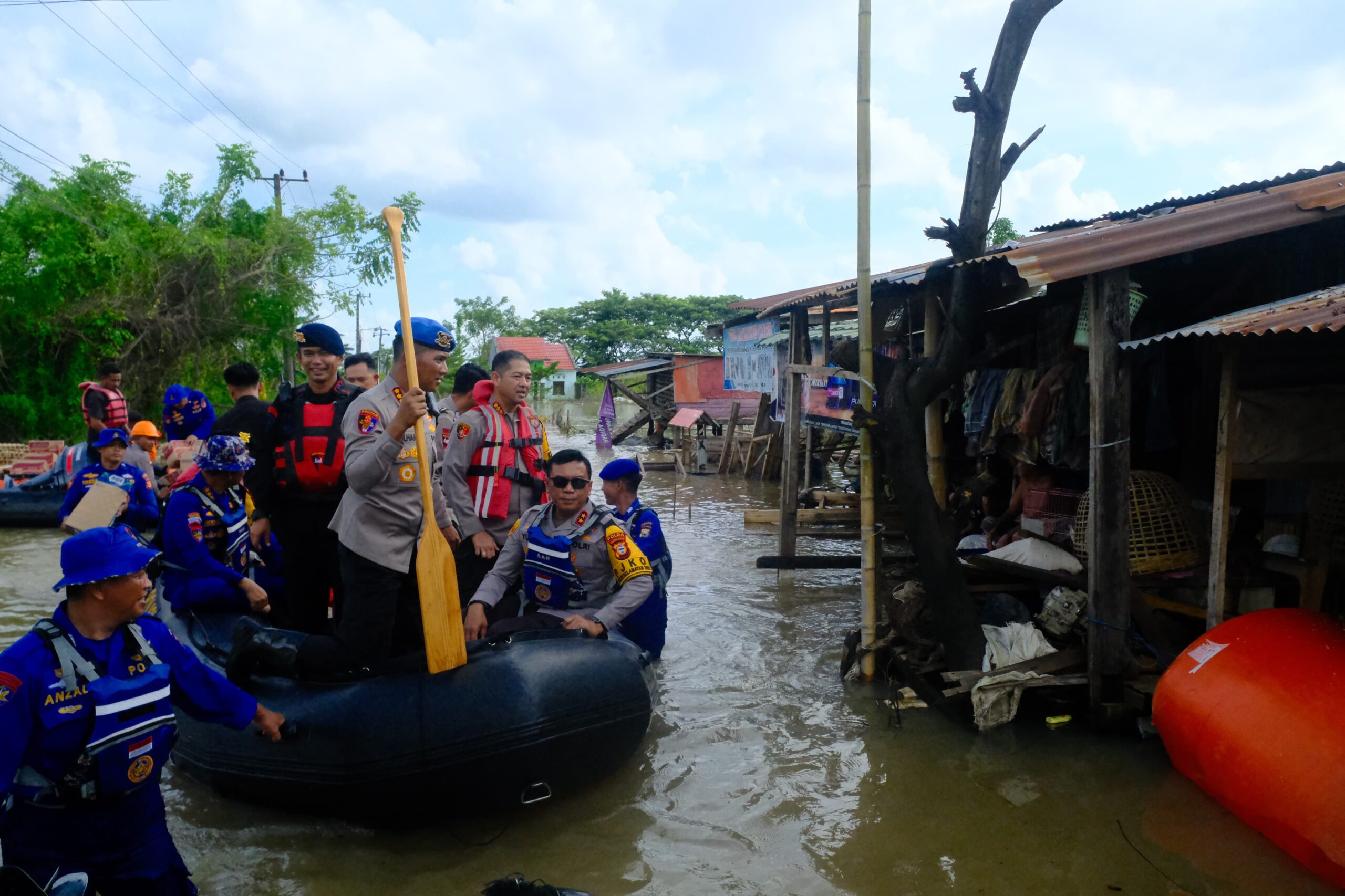 Setelah meninjau dan menyerahkan bantuan di Masjid Raya Baruga Antang, Kapolda dan rombongan melanjutkan kunjungan ke lokasi banjir di Blok 8 dan Blok 10 Perumnas Antang, Kelurahan Manggala. Setibanya di lokasi, rombongan menyeberang menggunakan perahu karet milik Polairud dan Basarnas untuk menyalurkan bantuan kepada warga yang terdampak.