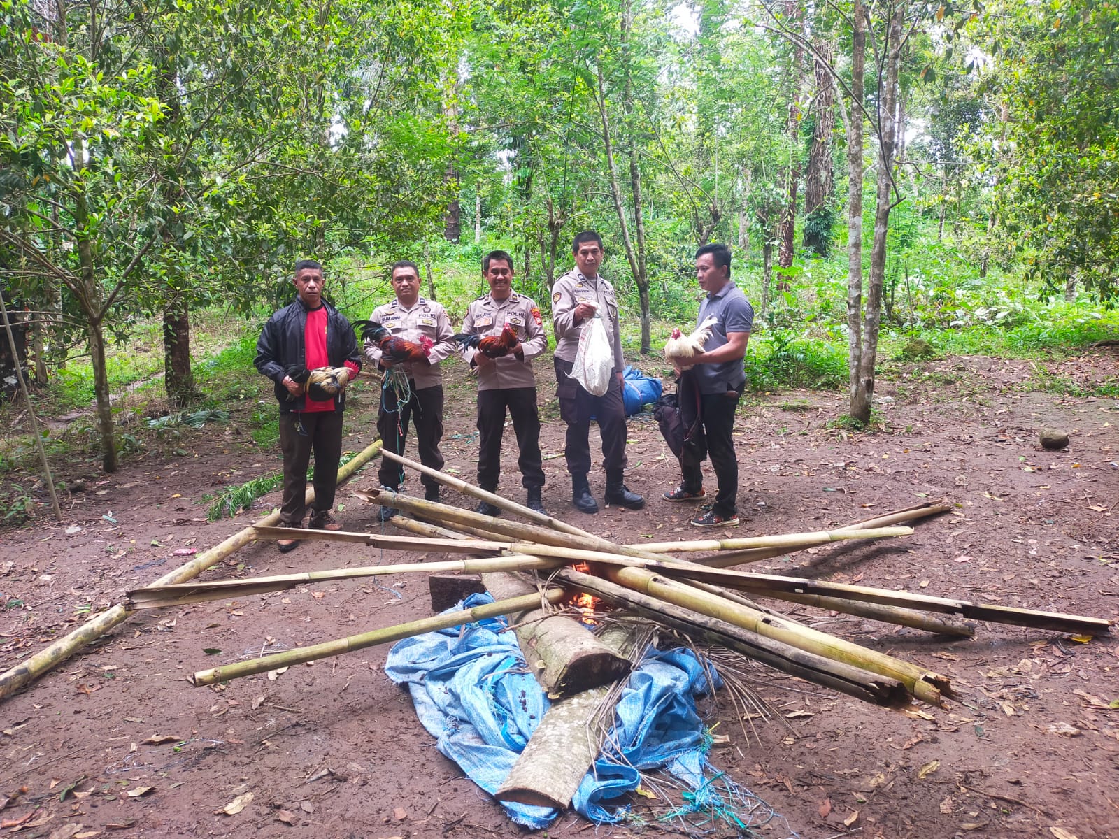 Sementara Ipda Muhammad Jusri yang memimpin pengerebekan mengungkapkan jika lokasi sabung ayam ini cukup jauh dari jalan tani Desa. “Lokasinya berada ditengah kebun cengkeh warga, akses menuju lokasi hanya bisa dilalui dengan berjalan kaki.” Ujarnya.