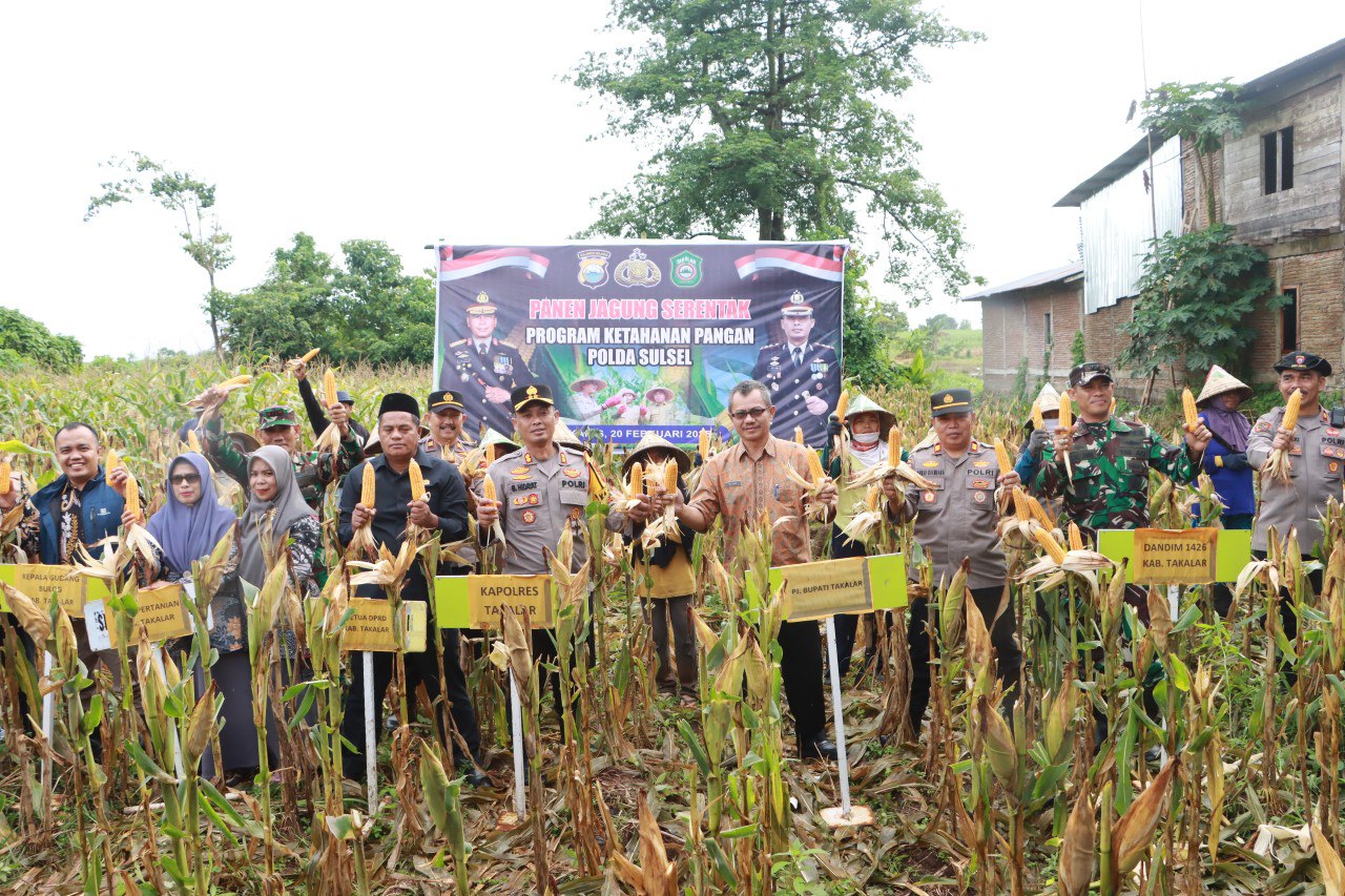 HALILINTARNEWS.id, TAKALAR β Dalam upaya mendukung program prioritas Presiden Republik Indonesia tentang ketahanan pangan, Kapolres Takalar, AKBP Gotam Hidayat, S.I.K., M.Si., bersama Forkopimda Takalar melaksanakan giat panen jagung kuning di Dusun Balangpaliasa, Desa Moncongkomba, Kecamatan Polongbangkeng Selatan, Kabupaten Takalar. Kegiatan ini berlangsung pada Kamis pagi (20/2/2025) sekitar pukul 08.00 WITA.