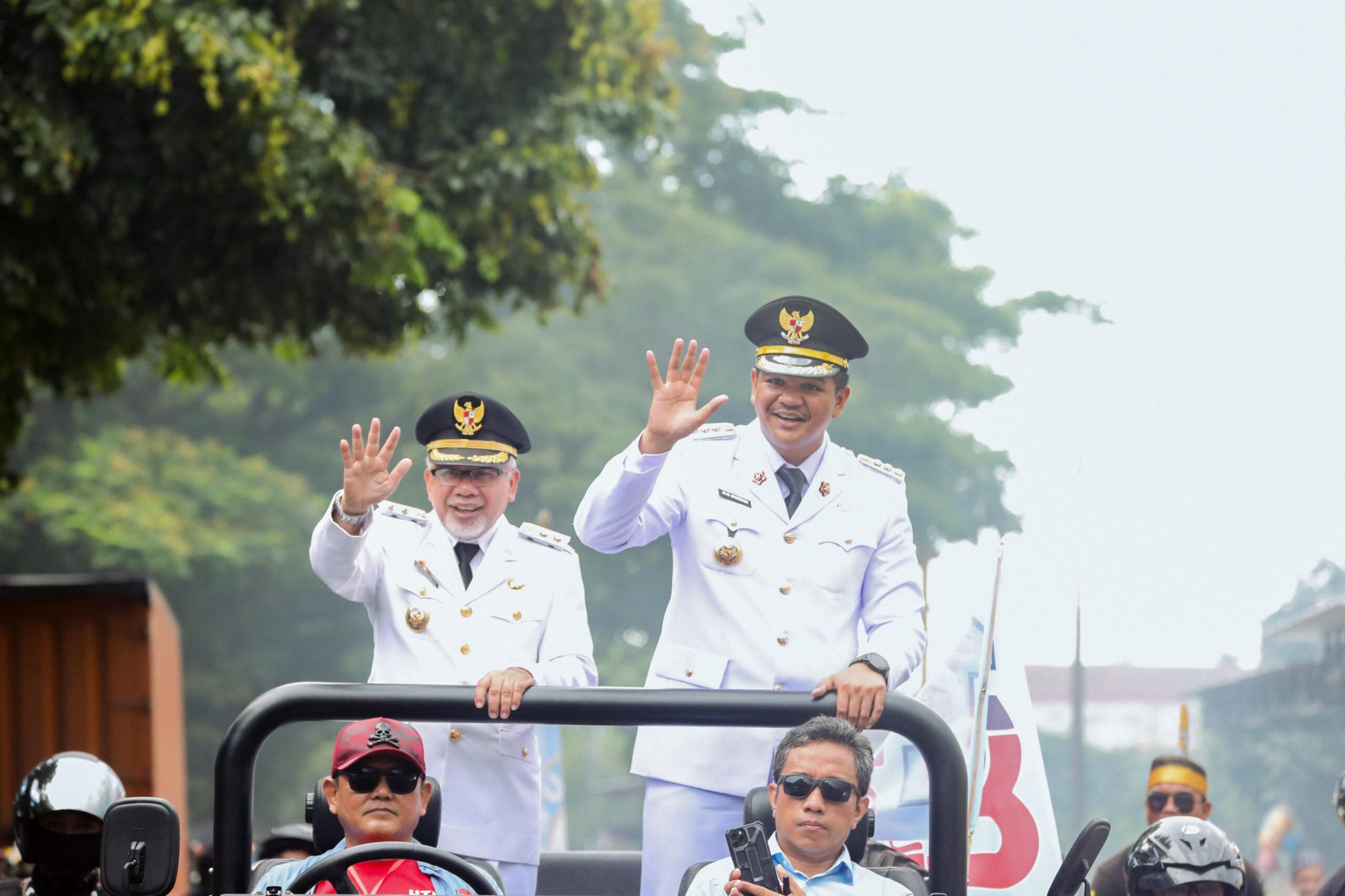 Pasangan kepala daerah ini disambut antusias masyarakat Kabupaten Bantaeng. Tiba di rest area perbatasan Jeneponto – Bantaeng, Uji – Sah menggunakan mobil Jeep terbuka.