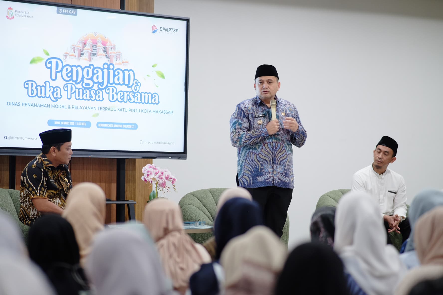 HALILINTARNEWS.id, MAKASSAR, – Wali Kota Makassar, Munafri Arifuddin, menghadiri kegiatan pengajian dan buka puasa bersama yang digelar keluarga besar Dinas Penanaman Modal dan Pelayanan Terpadu Satu Pintu (PTSP) Kota Makassar di Ballroom Gedung MGC, pada Jumat (14/3/2025).