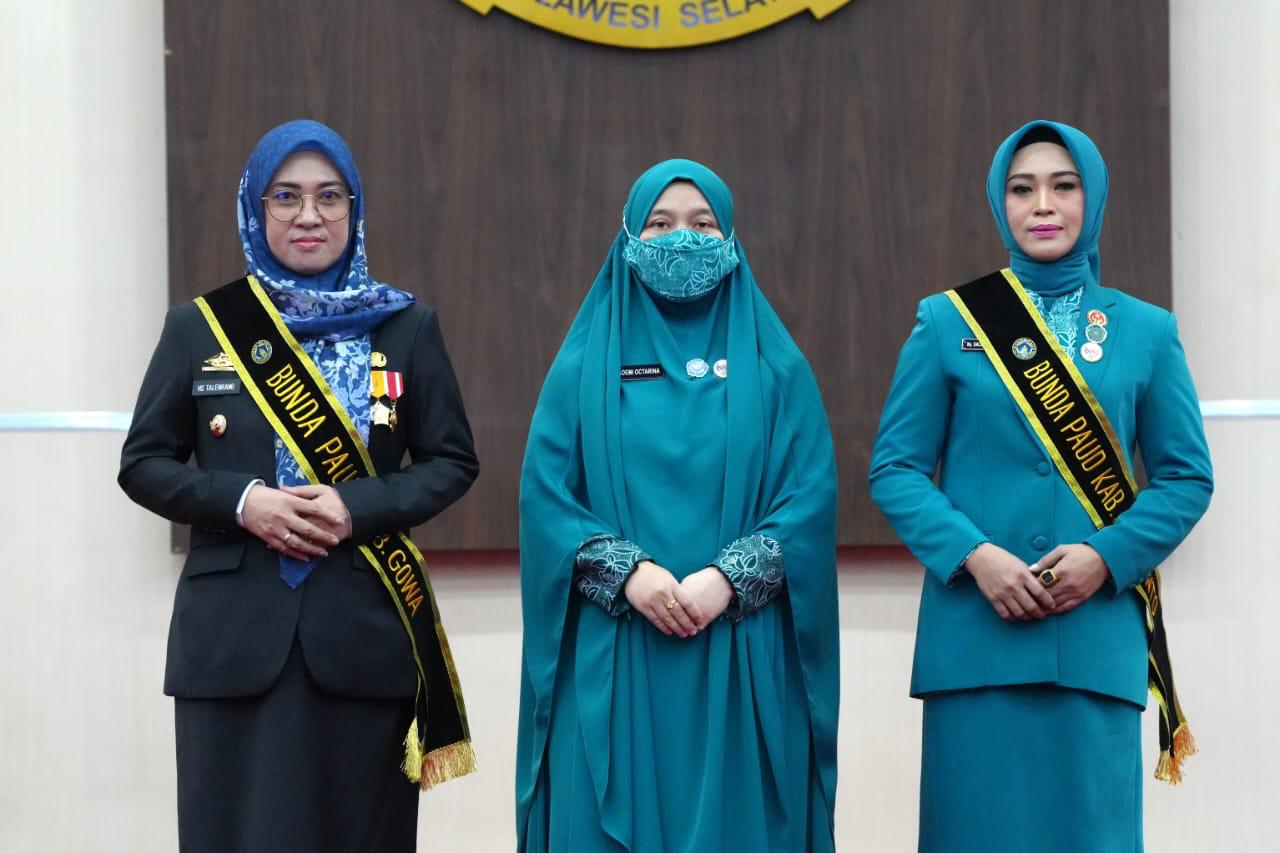 Sementara Ketua TP PKK Naoemi Octarina menyampaikan ucapan selamatnya kepada Ketua TP PKK Jeneponto yang baru saja dilantik dan Bunda PAUD Kabupaten Gowa yang baru saja dikukuhkan.