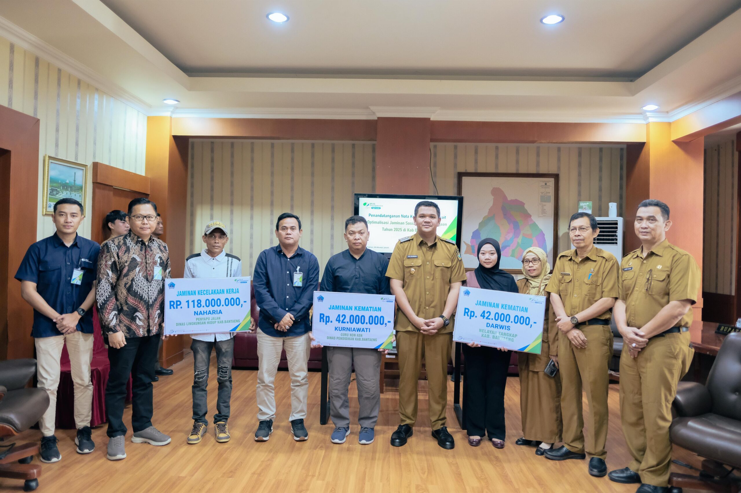 Kurniawati, guru non ASN mendapat jaminan kematian Rp 42 juta. Darwis, nelayan tangkap mendapat jaminan kematian Rp 42 juta.