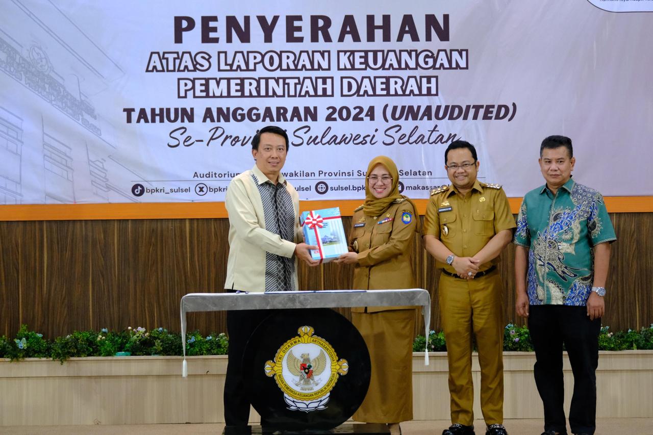 Dalam penyerahan LKPD 2024 di BPK RI Perwakilan Sulsel, dihadiri 5 (lima) daerah antara lain Pemerintah Kabupaten Gowa, Pemerintah Kabupaten Toraja Utara, Pemerintah Kabupaten Luwu Timur, Pemerintah Kabupaten Sinjai dan Pemerintah Kota Parepare.