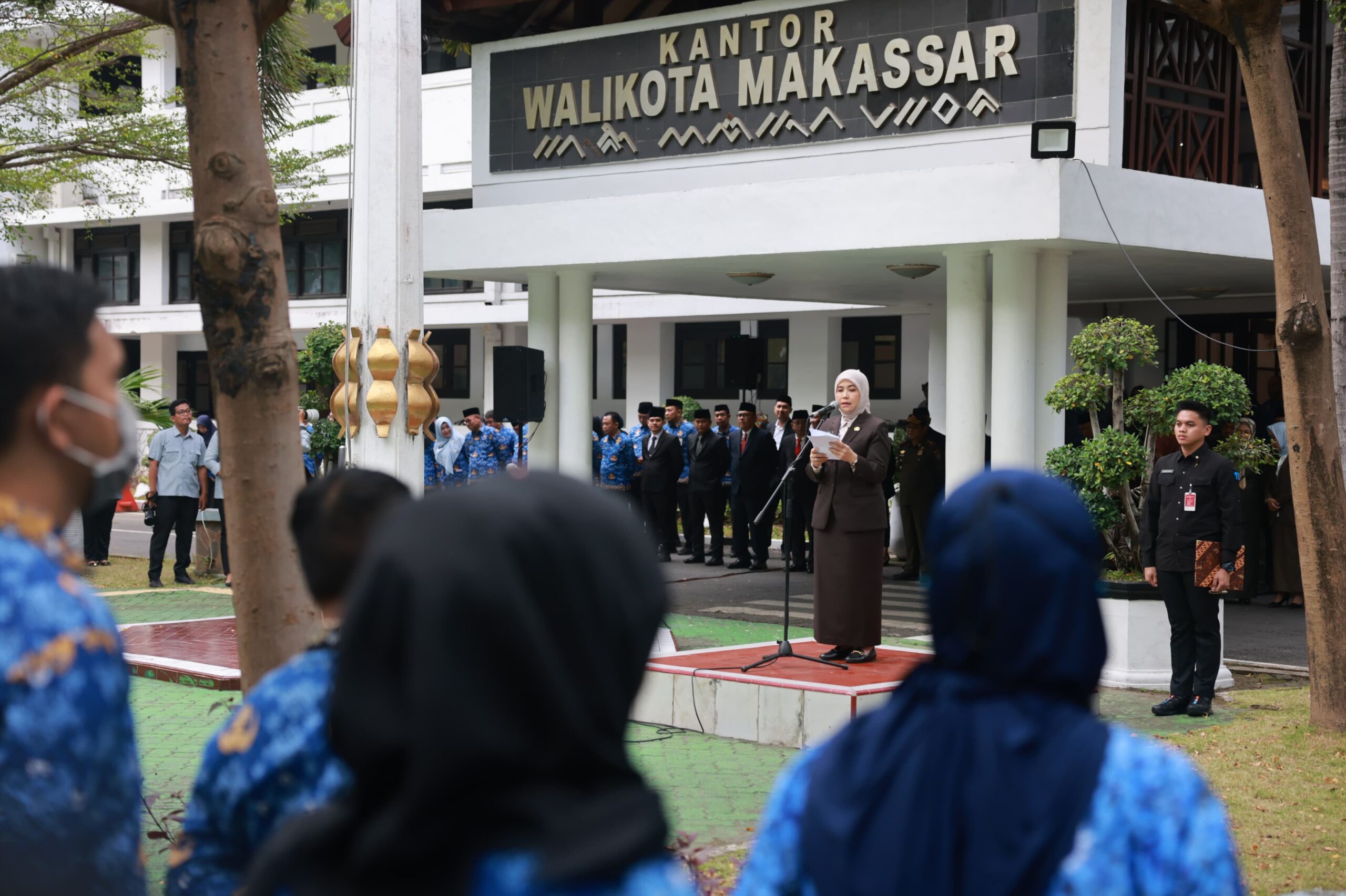 Di hadapan seluruh jajaran Pemkot Makassar, Aliyah juga membacakan sambutan seragam Menteri Komunikasi dan Digital Republik Indonesia (Komdigi RI), Meutya Viada Hafid.