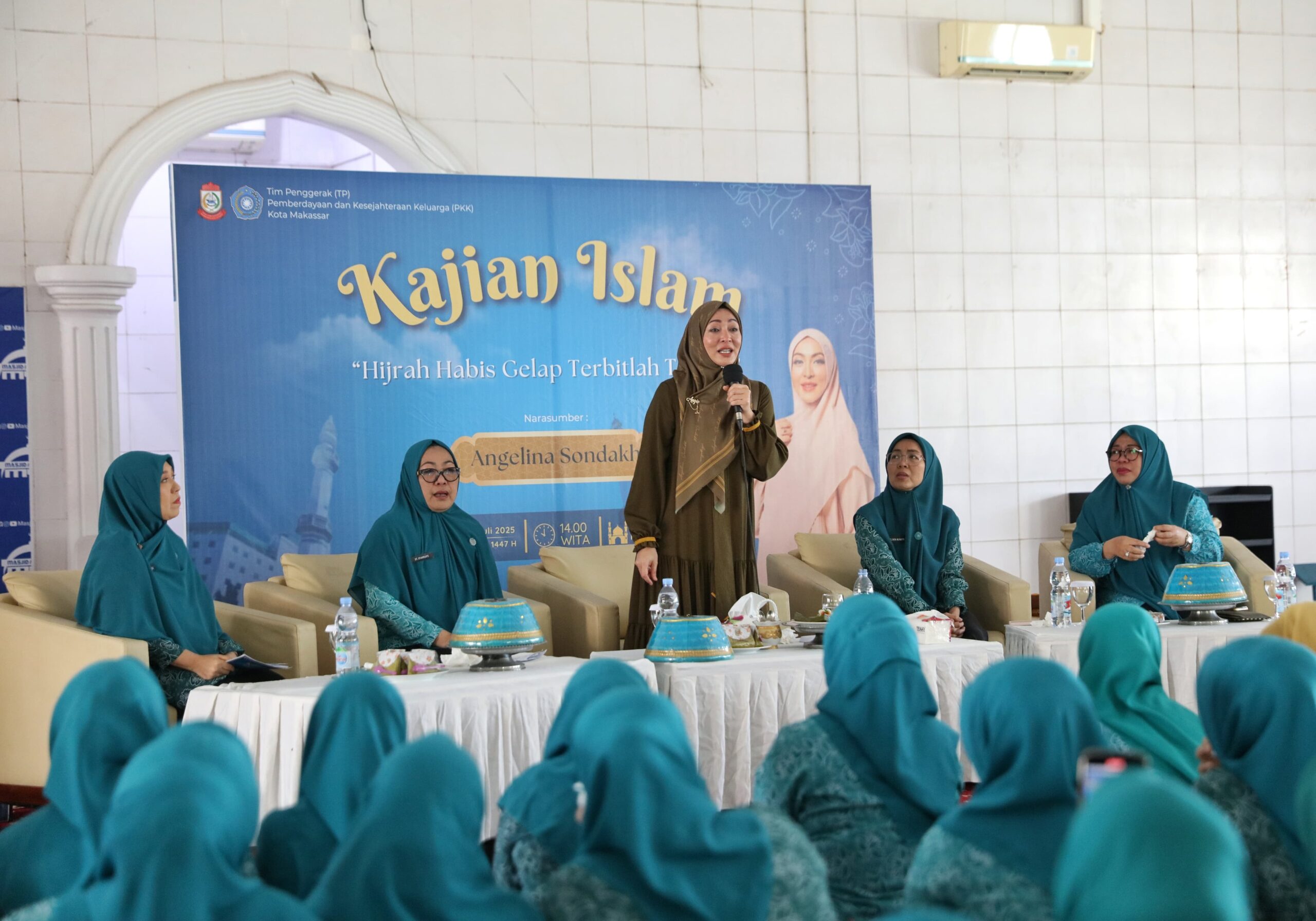 Kegiatan ini menghadirkan sosok publik yang kini dikenal sebagai pendakwah, Angelina Sondakh, sebagai pengisi tausiah dengan tema βHijrah, Habis Gelap Terbitlah Terang.β
