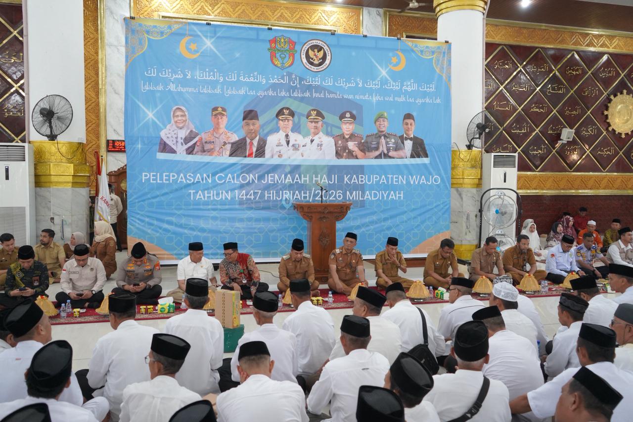 βAlhamdulillah, kita patut bersyukur kepada Allah SWT atas kesempatan yang diberikan. Hari ini Pemerintah Kabupaten Wajo secara resmi melepas Calon Jemaah Haji tahun 2026,β ujarnya.