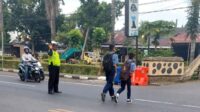 Berikan Rasa Aman, Polantas Takalar Bantu Pelajar Menyeberang Jalan